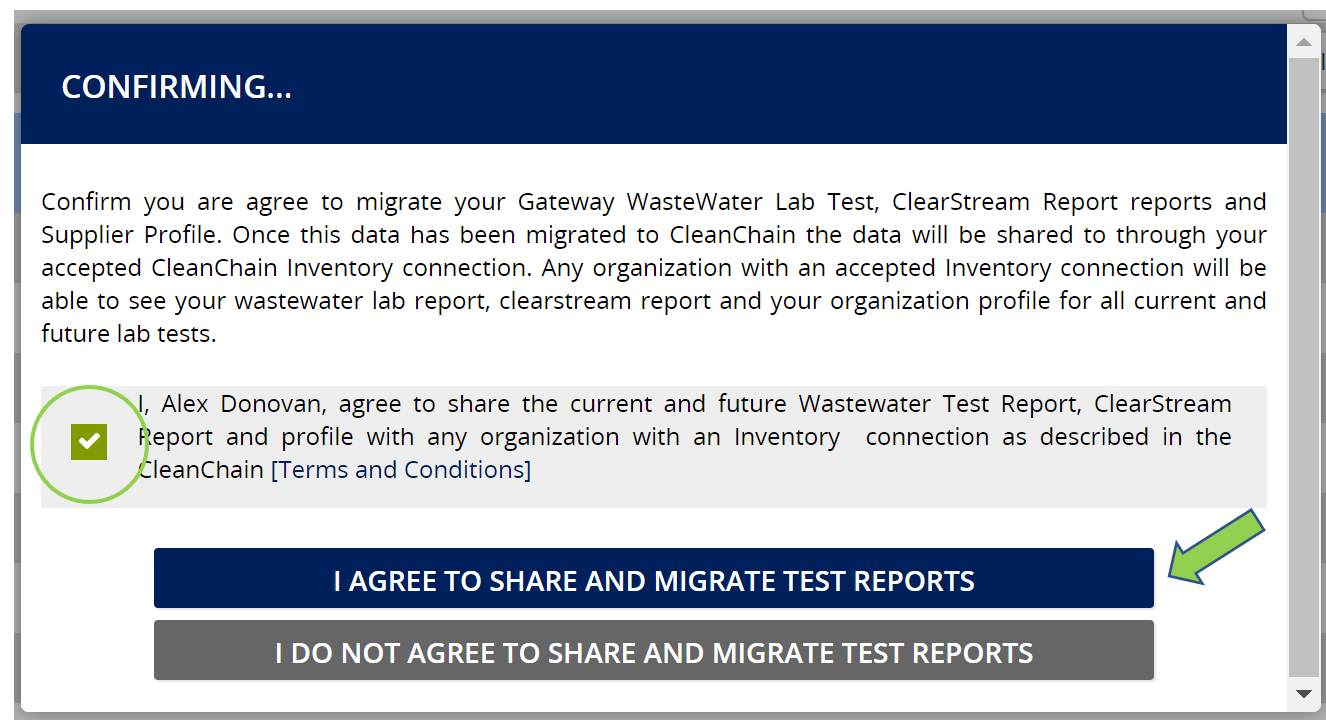 4. Agree to migrate test reports.
