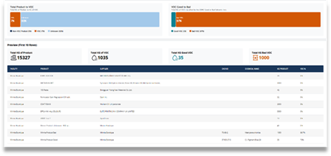CleanChain 现已全新上线化学品清单仪表板与VOC 仪表板。通过提升合规化学品使用的可视化管理能力,助力用户符合 ZDHC 与 Higg 标准要求。同时,用户可基于该仪表板生成 SDS 报告,协助工厂填写ZDHC CIL,简化合规流程,助力降低供应链对环境与人体健康的影响。